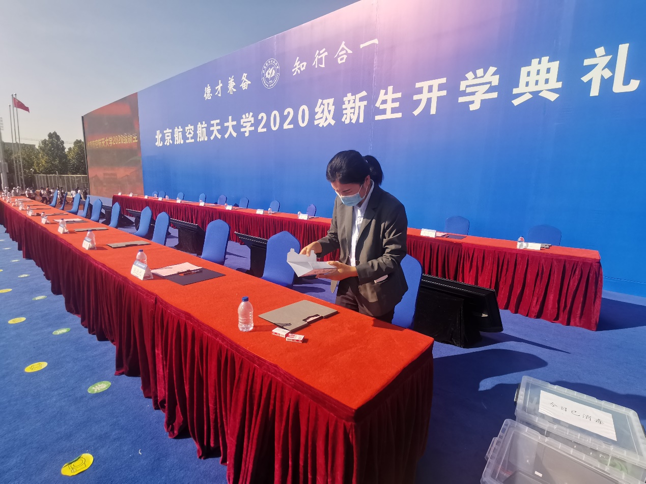9月20日上午08:00北航2020级新生开学典礼首次在学院路校区和沙河校区实时同步举行。两校区本研新生共10572名同步参与。为保障开学典礼的顺利举行,后勤保障处在学校的统一安排下,提前筹划、认真部署,完成了两校区会场的消毒及保洁、供电保障、会议服务及防疫物资应急准备和发放等一系列工作。