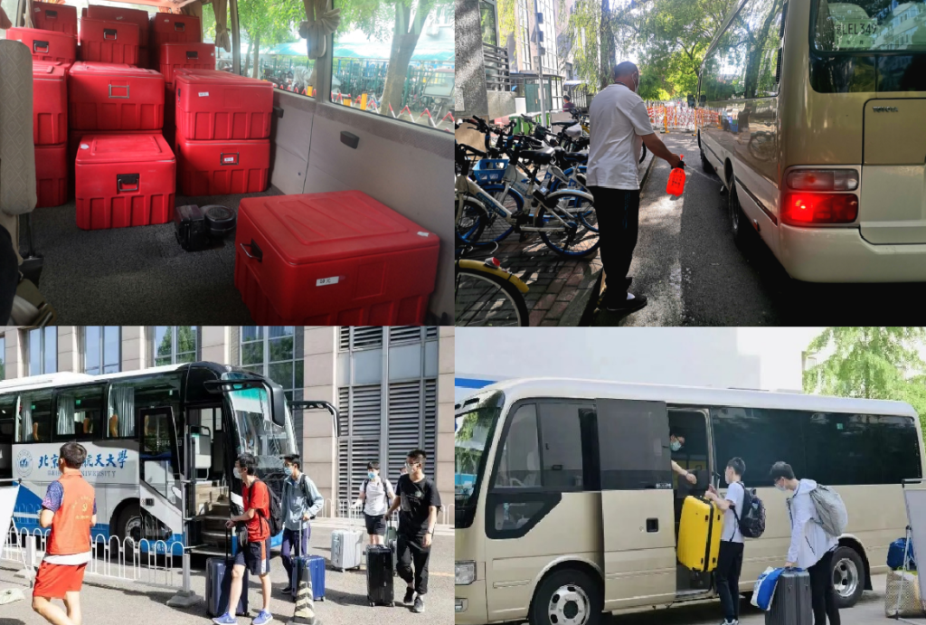 为落实上级疫情防控工作要求,加强校园闭环管理,5月19日凌晨起,两校区同步暂时取消外卖配送的餐品。考虑到大运村距离食堂较远的实际情况,学校决定在大运村设立盒饭售卖点,为解决大运村盒饭运送问题,交通运输部第一时间组建党员送餐小分队,为大运村盒饭运送提供车辆和人员保障。为了保障学生准时开餐,运输师傅们每餐要往返大运村运送三到四趟。每日运送几千份盒饭。除此之外,面对学生返乡的新需求,交通运输部全力做好学生返校保障工作。一列列返乡送站大巴,从两校区乘车点出发,“两点一线”送至车站和机场,最大程度减少接触,保障同学们的安全。