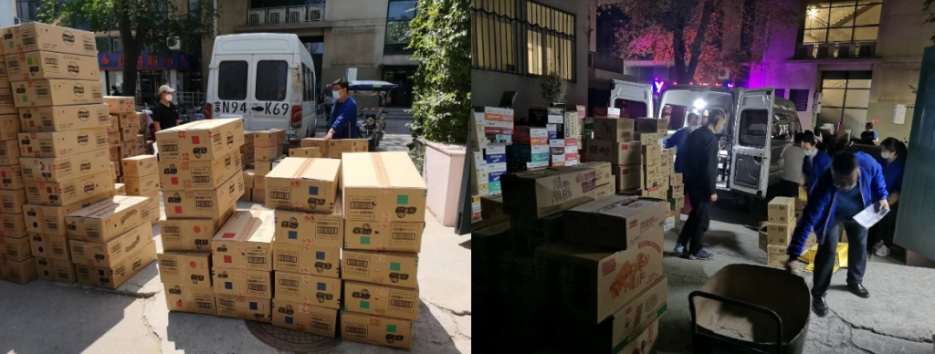 作为与闭环外产生联系的唯一区域,卸货区安全保障工作也受到物业部门的重视。每天清晨6:00开始,安排人员在学二食堂卸货区,学5公寓地下室优购超市卸货区认真检查、监督卸货期间的防疫情况,检查所有送货车辆内外是否消毒、消毒封条是否开启、车辆消毒记录日期是否齐全、司机有没有开车门、车窗、车内硬隔离是否完好等违规现象发生,确保不在卸货环节出现任何问题。