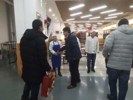 雷晓锋处长一行来到消防集中监控中心、锅炉房、总配电室、食堂,给坚守在工作岗位上的员工送去新年慰问品并送上新年的问候及祝福。每到一处,雷晓锋处长都会详细了解各岗位目前工作情况,希望值班员工坚守岗位,尽职尽责,为沙河校区平稳度过寒假调整期站好最后一班岗。