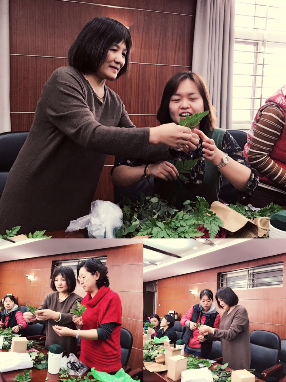 活动现场,花艺师从修剪、选花搭配、造型设计等方面进行了详细的讲解,强调了插花的操作技巧和注意要领,并进行现场插花演示互动。女职工们兴趣盎然,在花艺师的指导下,发挥创造力,施展插花技能,将原本普普通通的花草修剪,再根据不同的色彩搭配,整合造型,插出了漂亮美丽的作品,为节日增添了一道亮丽的风景线。