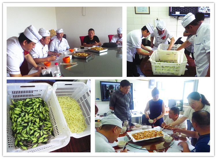 本次考核按照策划要求,切配考核内容为3斤土豆切丝和2斤黄瓜切菱形片,要求在20分钟内完成切配;厨师考核内容为指定菜品醋溜白菜和自选菜品一道,菜品总量按10人份计算,每份250克,考核时间40分钟。考核过程中,质检部精心组织,各食堂高度重视,在公平、公正、客观的基础上,评委们对切配工从刀工、速度、节约和规范方面进行综合考评,对厨师的菜品从色泽、口味、搭配等方面进行分项考核。通过大家的共同努力和配合,考核工作有序开展。