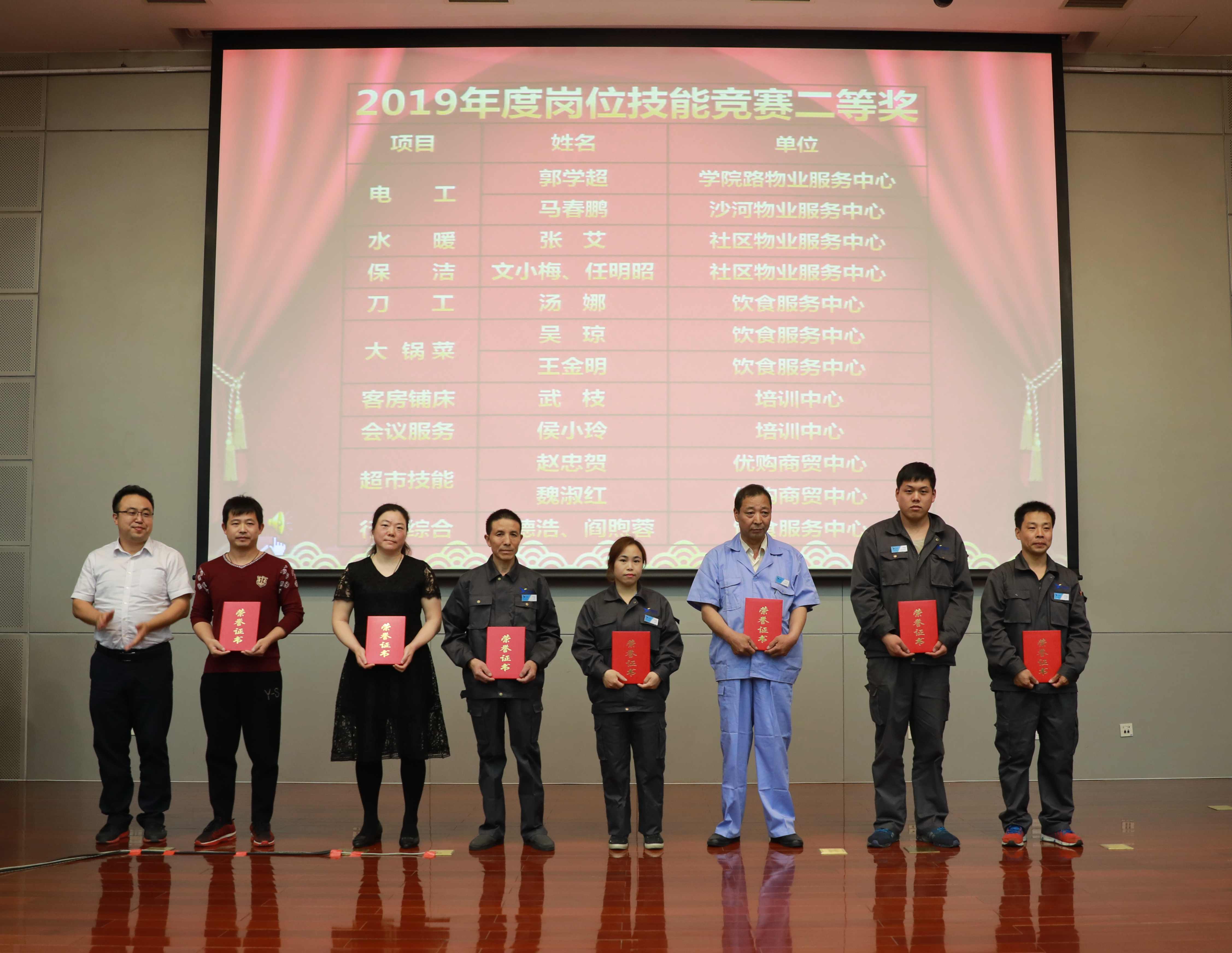 后勤保障处陈斌副处长宣读了《关于表彰2019年度岗位技能竞赛获奖员工的决定》。后勤对在竞赛中取得优异成绩的员工进行表彰,同时授予各竞赛项目一等奖获得者“后勤2019年度岗位能手”称号。