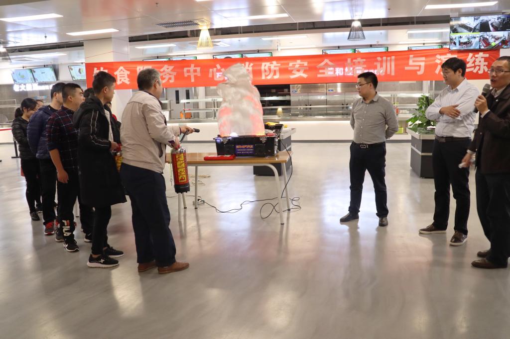 为进一步增强全员消防安全意识,提升应急处置能力,确保即将在我校举办的“挑战杯”竞赛顺利进行,饮食服务中心结合“119消防日”宣传教育计划,于11月6日下午,特邀保卫处消防科科长王庆华,在学六食堂为中心全体员工开展了消防安全专题培训及消防演练。