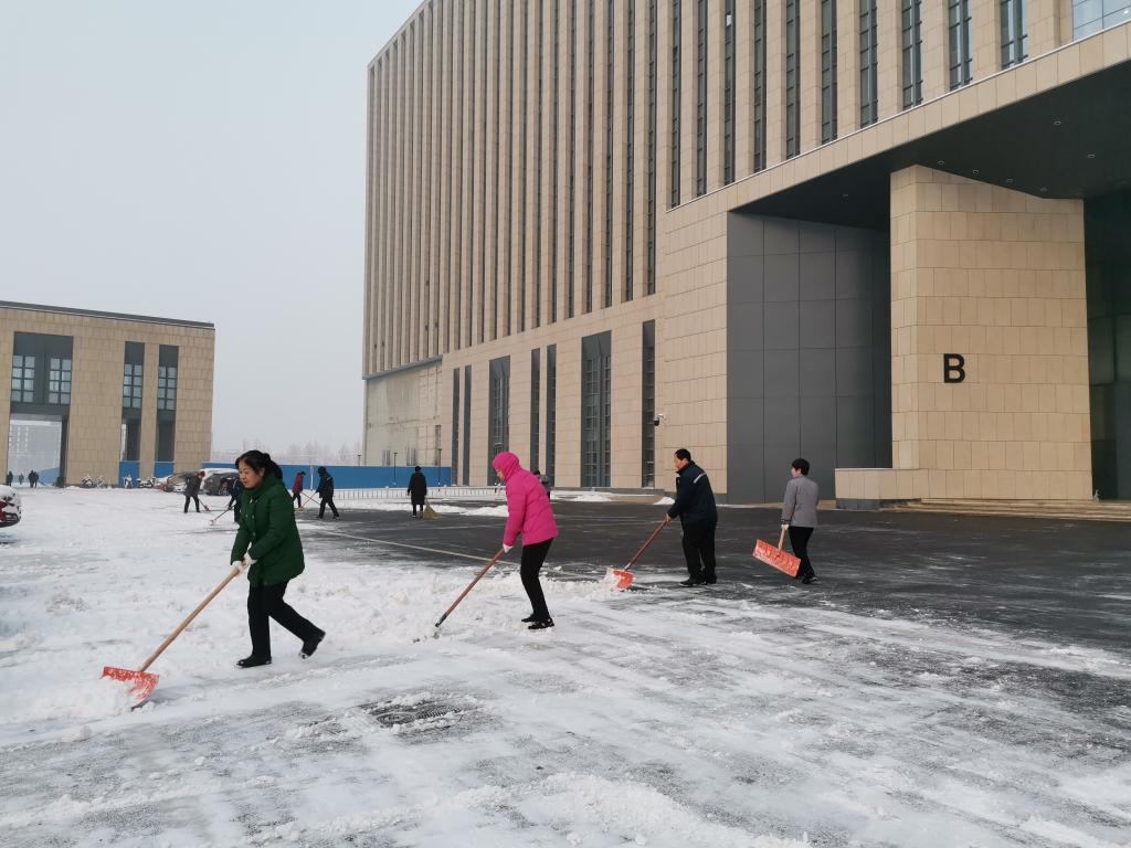 2020年的第一场大雪,使沙河校区银装素裹,但是也给老师和同学们的出行带来了极大的不便。此次降雪量大,持续时间长,雪后降温导致路面湿滑结冰。单单依靠保洁人员,无法完成扫雪铲冰工作,沙河物业服务中心号召全体员工,全部投入到扫雪战斗中来。他们挥舞着手中的铁锹、雪铲、扫把,对公寓、教学、实验楼、主楼、食堂周边重点路面进行清理,经过紧张有序的努力,终于将路面上的积雪清理干净。杜绝了安全隐患的发生。