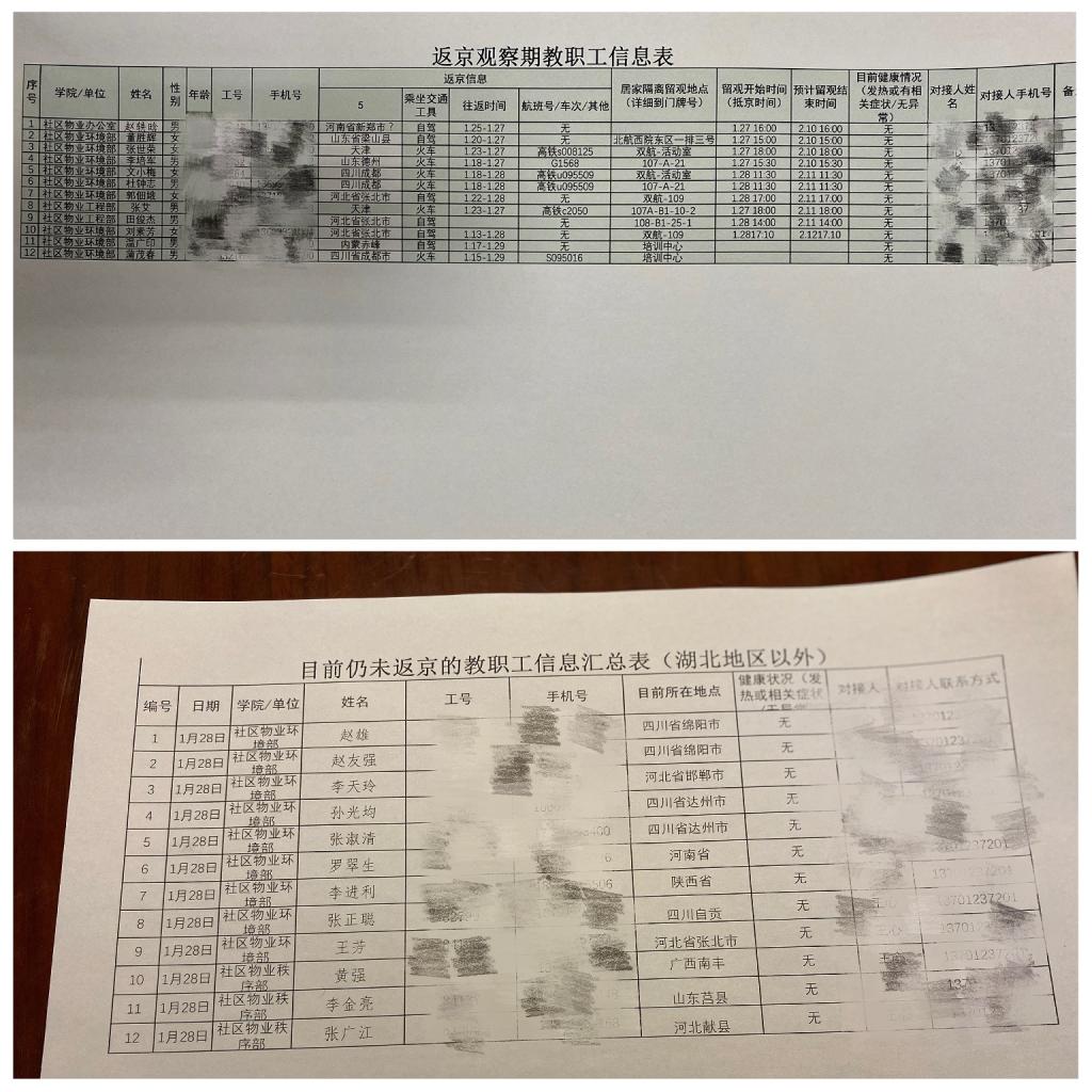 根据学校要求,摸排全体员工个人身体状况、在京及离京信息等,报送每日数据。