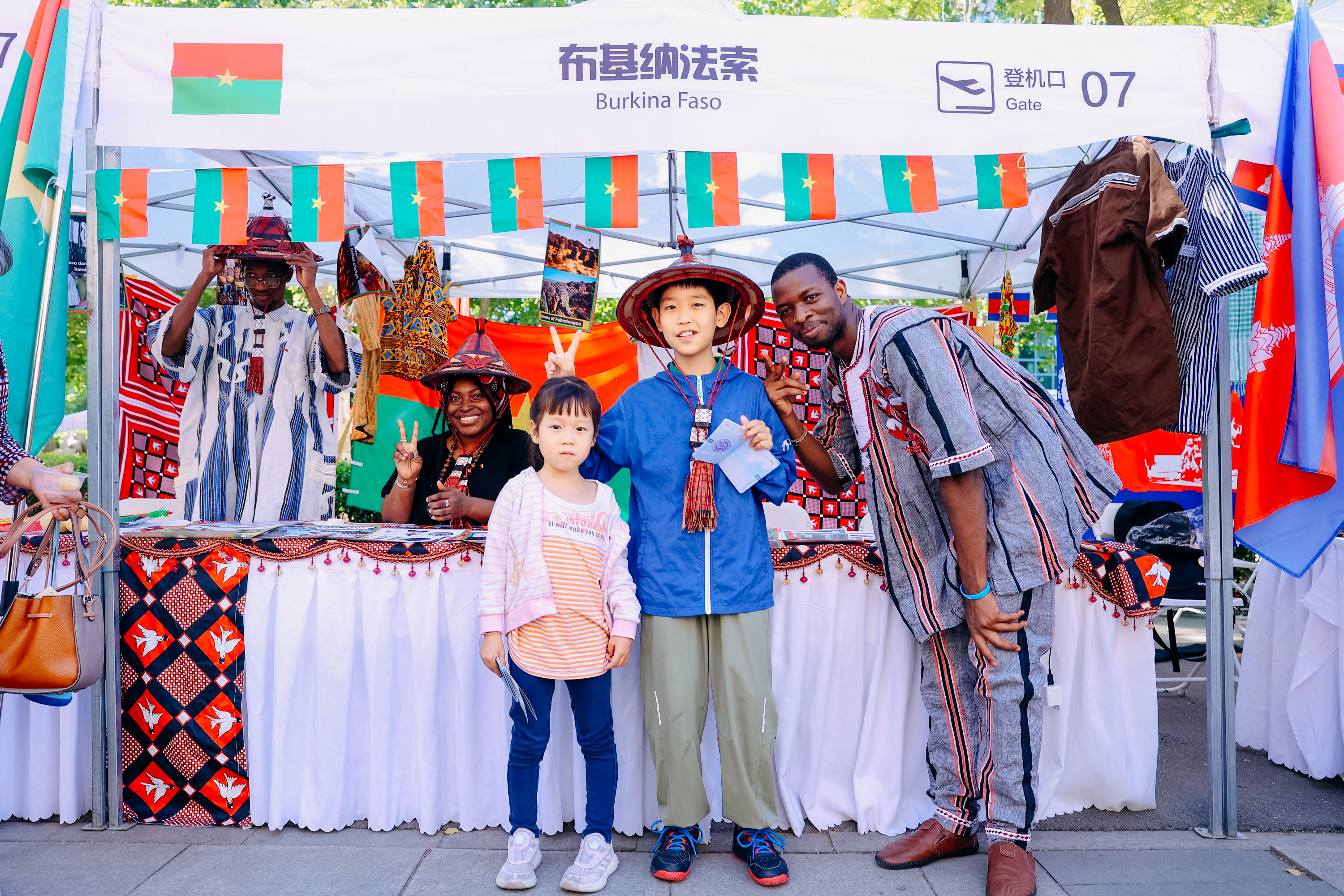 从各国展台“登机口”领取国旗贴纸